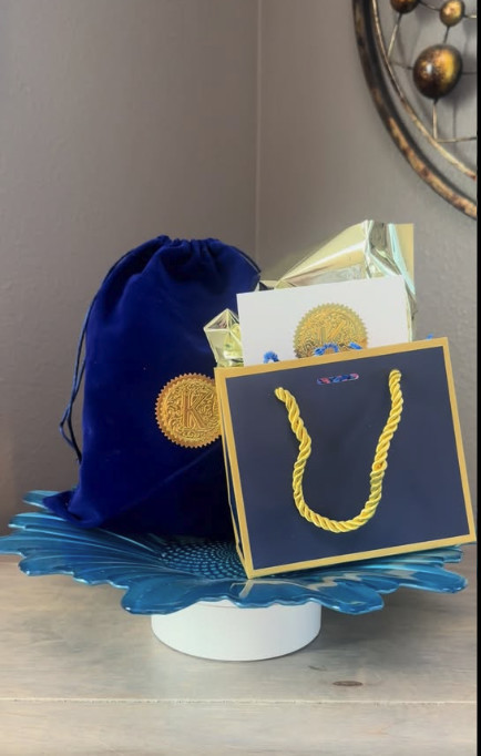 A gorgeous plush self-care bag filled with indulgent treasures for you.